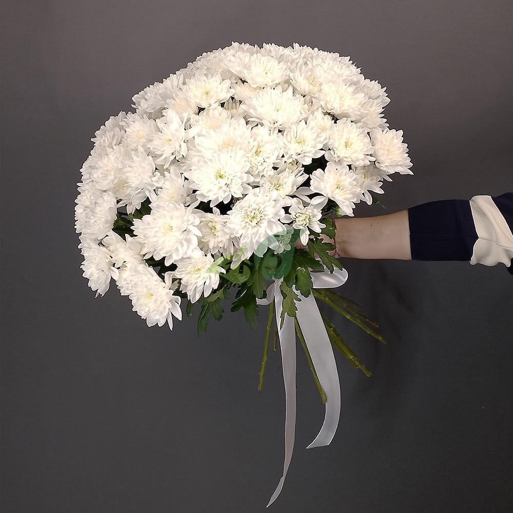 Такие букеты заказывают для самых красивых и любимых на свете. Белые хризантемы дополняют романтичными записками или открытками с пожеланиями. А мы доставляем в любой район.