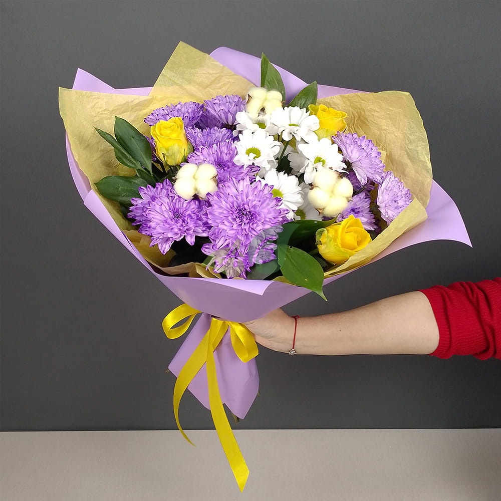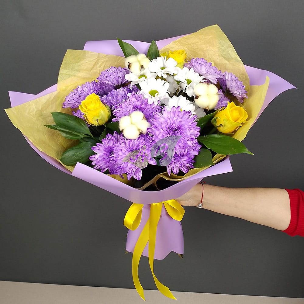 - Хризантема кустовая - 3 штуки, цвет - сиреневый;
